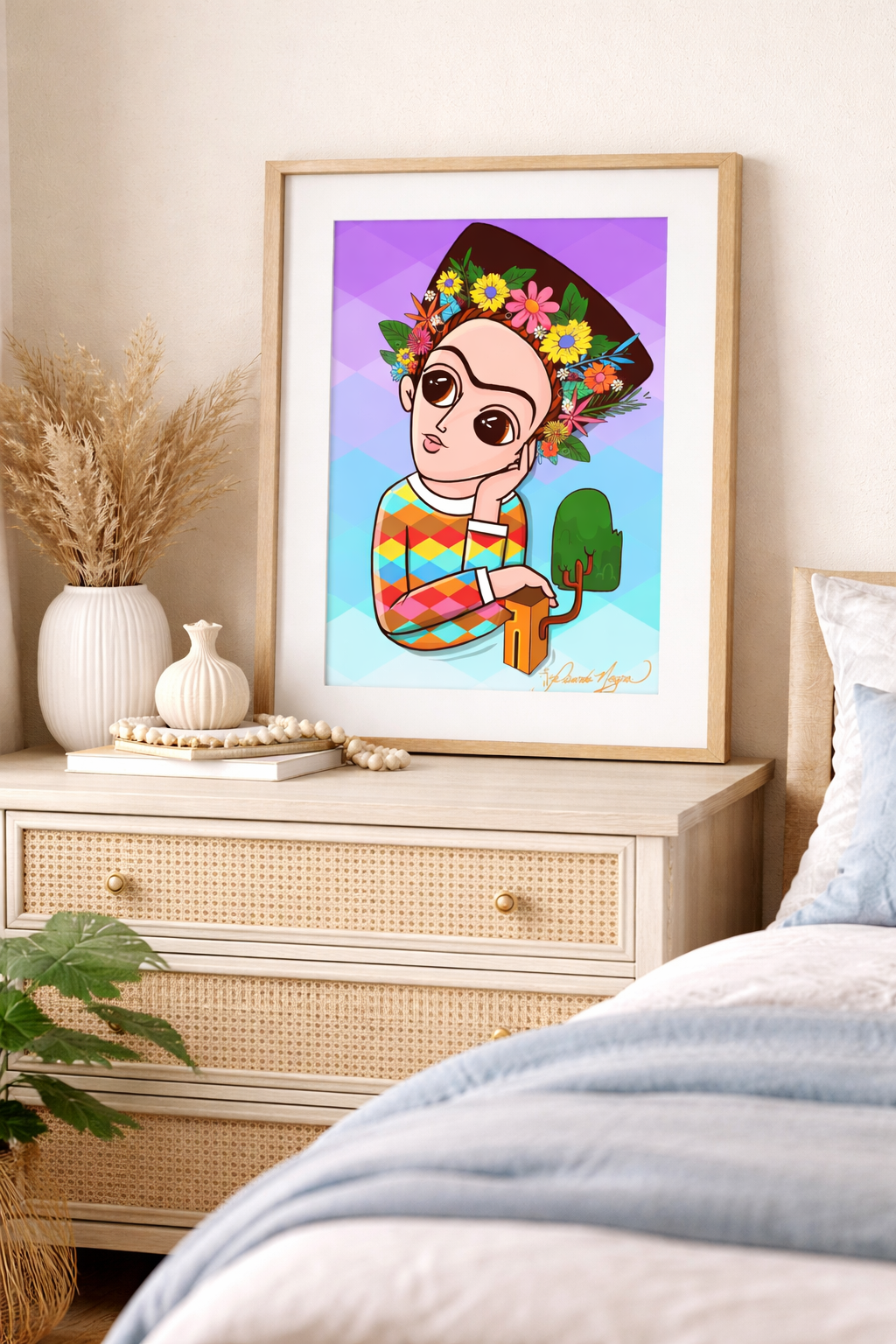 Título: Frida Tamanho: 29 x 42cm - A3 Técnica: Impressão em papel. Inspirado na força e sensibilidade de Frida Kahlo, este Giclée é resultado de um processo artístico que começou na minha época de faculdade de Artes Visuais. Desde que conheci sua história, mergulhei em suas cores, símbolos e emoções — e, aos poucos, Frida se tornou presença constante nos meus trabalhos. Essa obra é uma homenagem à sua intensidade, ao seu olhar sincero e à sua maneira única de transformar dor em beleza. Pensado para quem se conecta com a arte como forma de expressão e identidade. Impressão, ideal para ambientes com personalidade, história e alma.